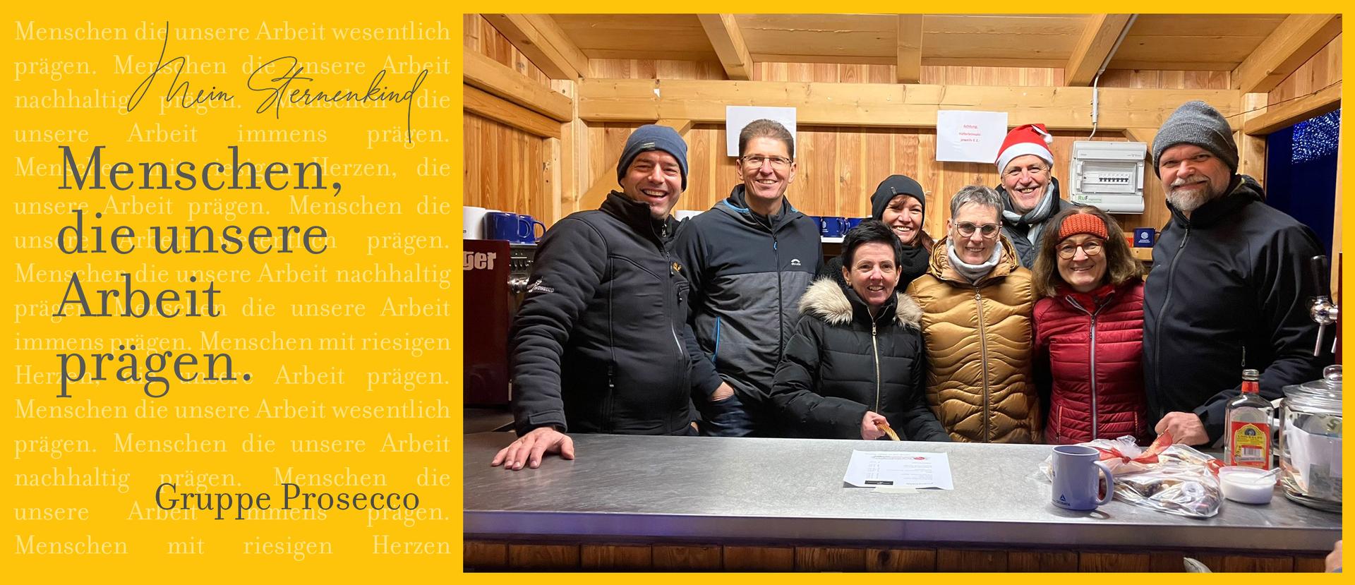 13 Mitglieder der Gruppe standen im Advent 2025 auf dem Markt, die Goldenen Sternchen gehen somit an Heike Lampel, Heike Lepaj, Leonie Lepaj, Zsuzsa Keszleri, Patrick Moser, Christian Klement, Luca Scherbinek, Jürgen Weiz, Andreas Lukas, Markus Keszleri, Andreas Lampel, Marco Lepaj und natürlich den Obmann des Vereines "Gruppe Prosecco", Gerhard Lepaj.